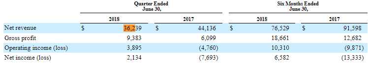 For the six months ended June 30th, 2018, Napster brought in $76.5 million in revenue, down 16.5% from $91.6 million in the first half of 2017. Gross profit, however, rose 47.1% to $18.7 million. Operating income also saw a huge increase, reaching $10.3 million over operating losses of $9.9 million in H1 2017.